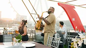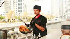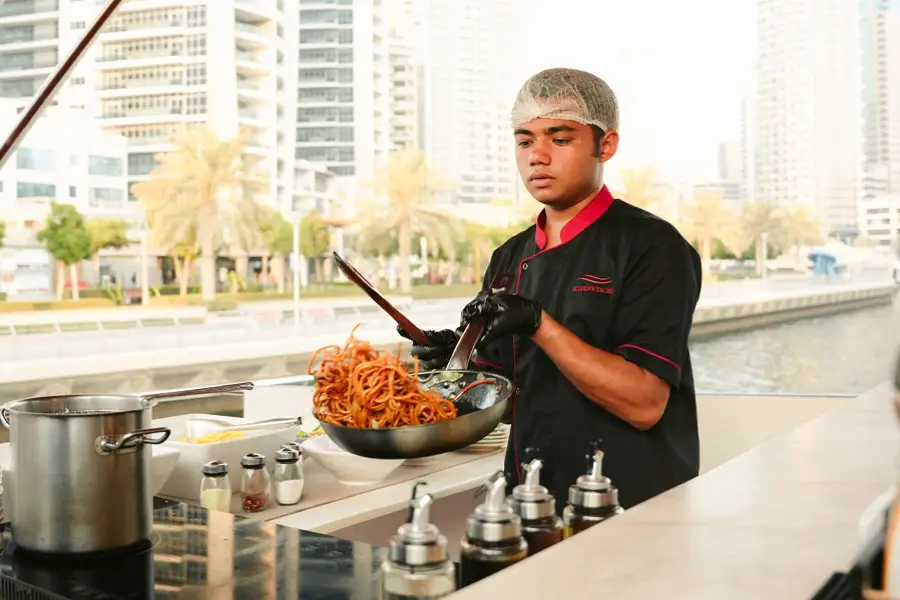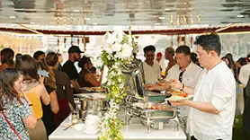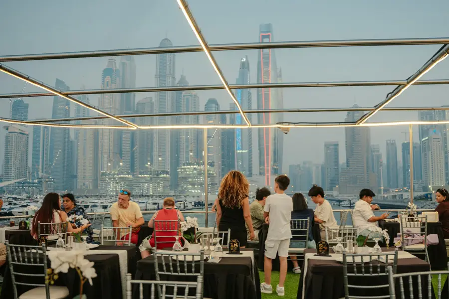 Make your evening extra special with the only 5-star luxury dinner cruise Dubai. Our service guarantees a luxury dinner cruise Dubai Marina onboard our 125ft glass houseboat. Savor our sumptuous international buffet menu from your private seating, enjoying the breathtaking views and elegant ambiance of the Dubai Marina.