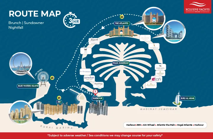 Our planned route offers a scenic and luxurious experience; however, it may vary depending on weather and sea conditions to ensure your safety and comfort.