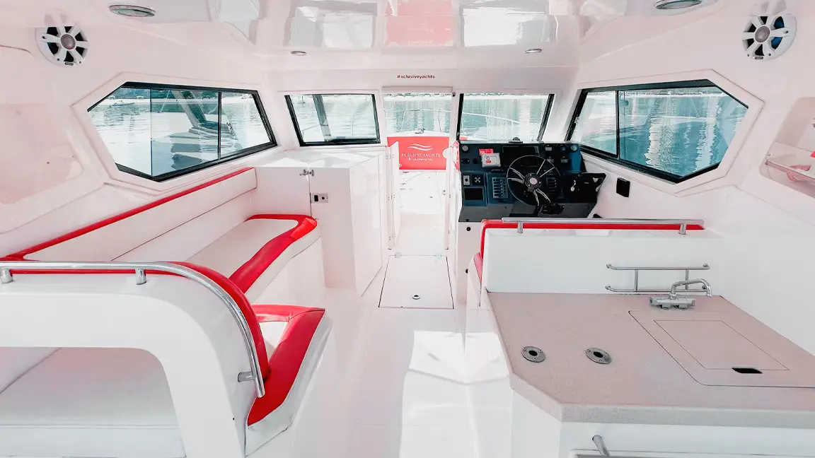 Xclusive 13 a sports boat made for leisure and comfort. Just by the look of its exterior you’ll already feel the strength of its power. It fits up to 9 people. there is also a toilet making her perfect for longer trips.