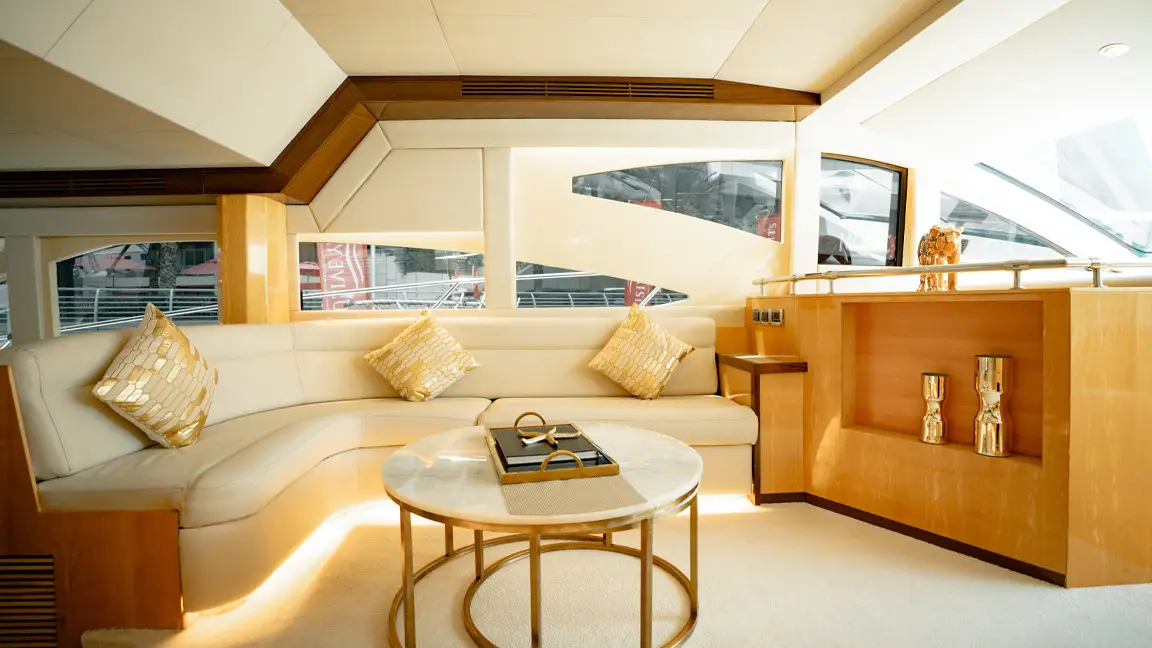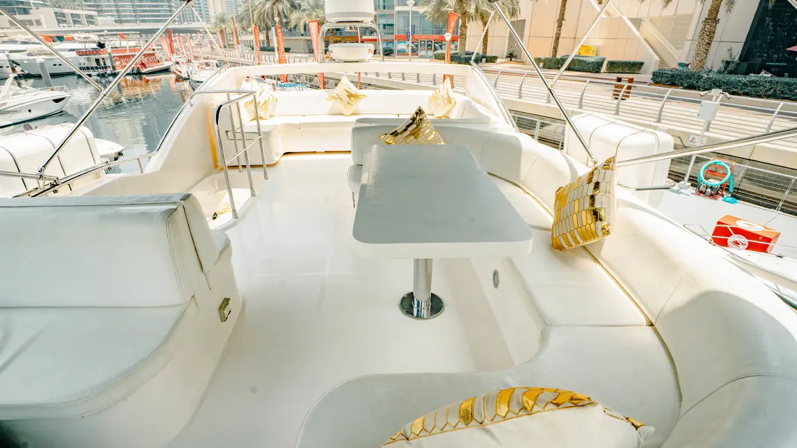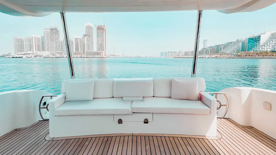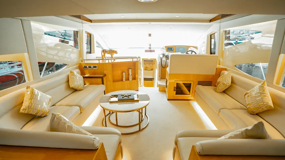 If you want to cruise the waters of Dubai in absolute comfort then Majesty 62 is the right choice for you. The yacht is large enough to cater for up 20 guests during the day and has 3 cabins. It has a very spacious living area with comfortable seating and a separate dining area as well. the main attraction of this yacht is the large fly bridge area. Tastefully decorated and equipped to a very high standard you can be sure of a memorable charter experience on our Majesty 62.