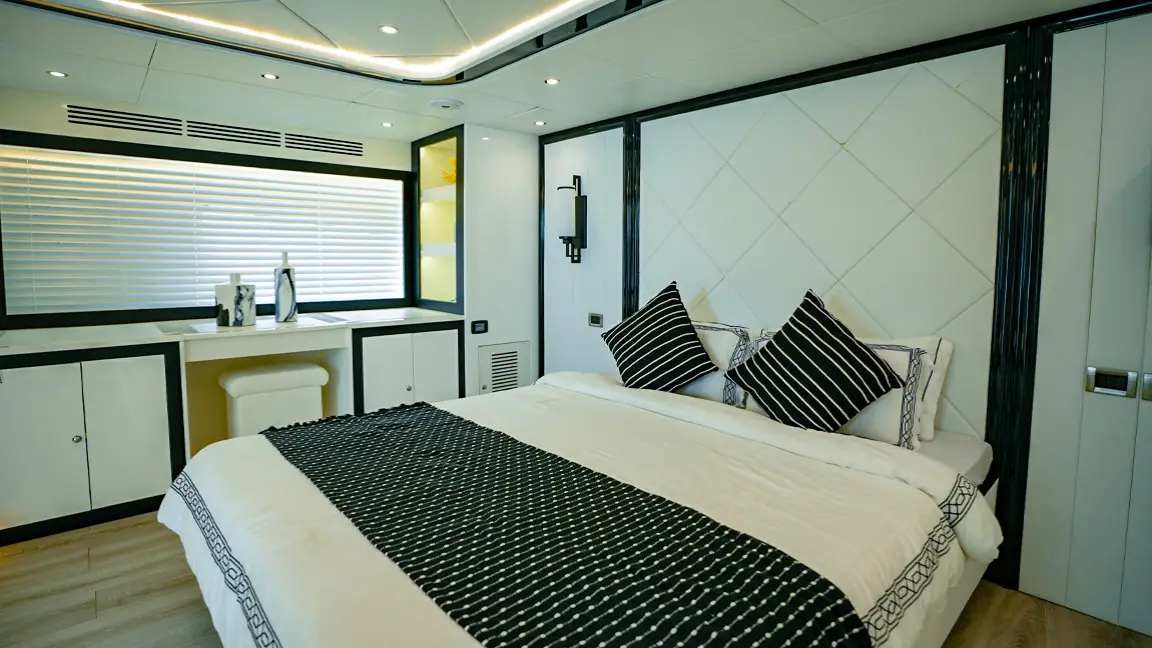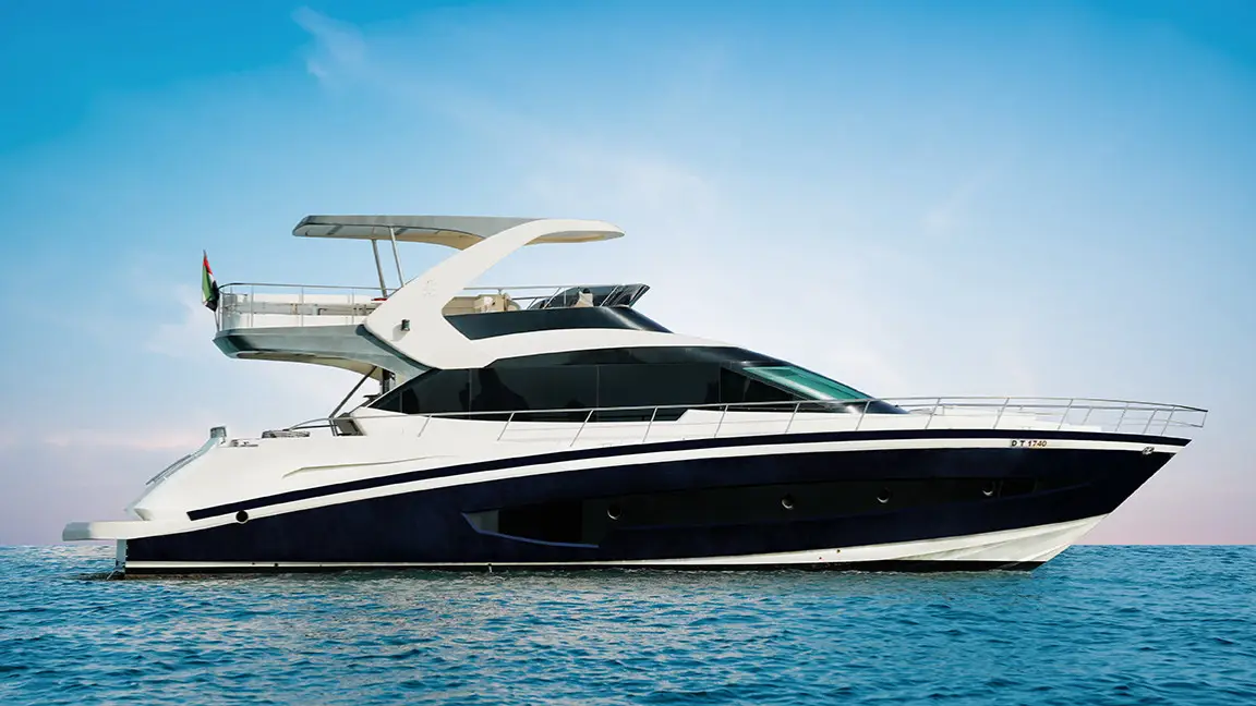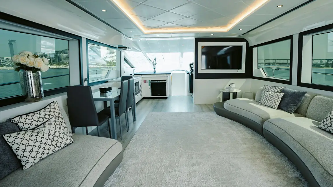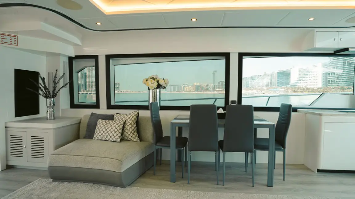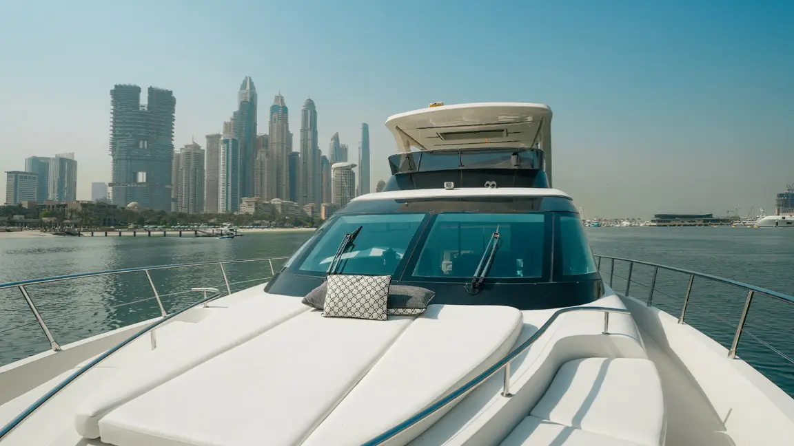 Book the brand new 75ft X41 yacht in Dubai, offering unique design and spacious luxury for up to 25 guests. Perfect for large groups seeking an exclusive sea experience with modern amenities and expert crew service.