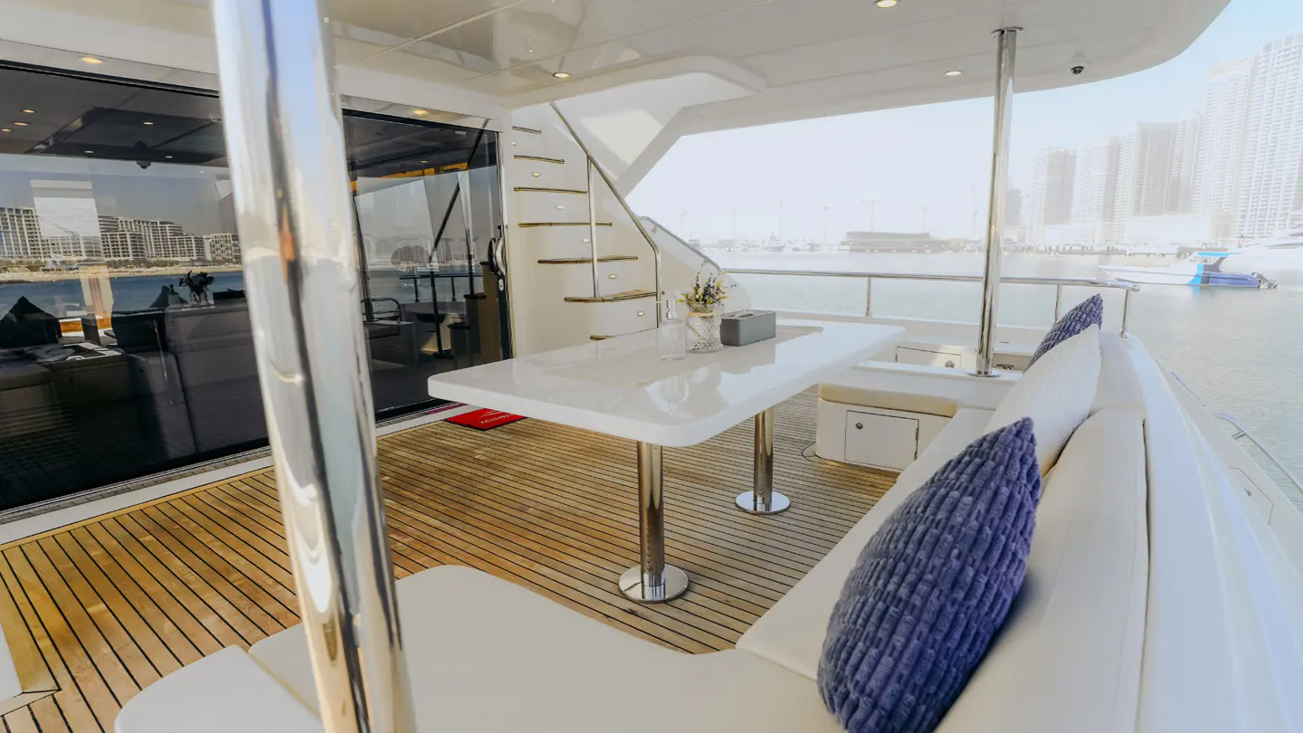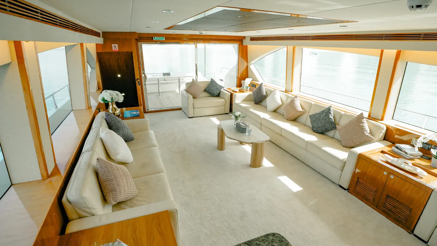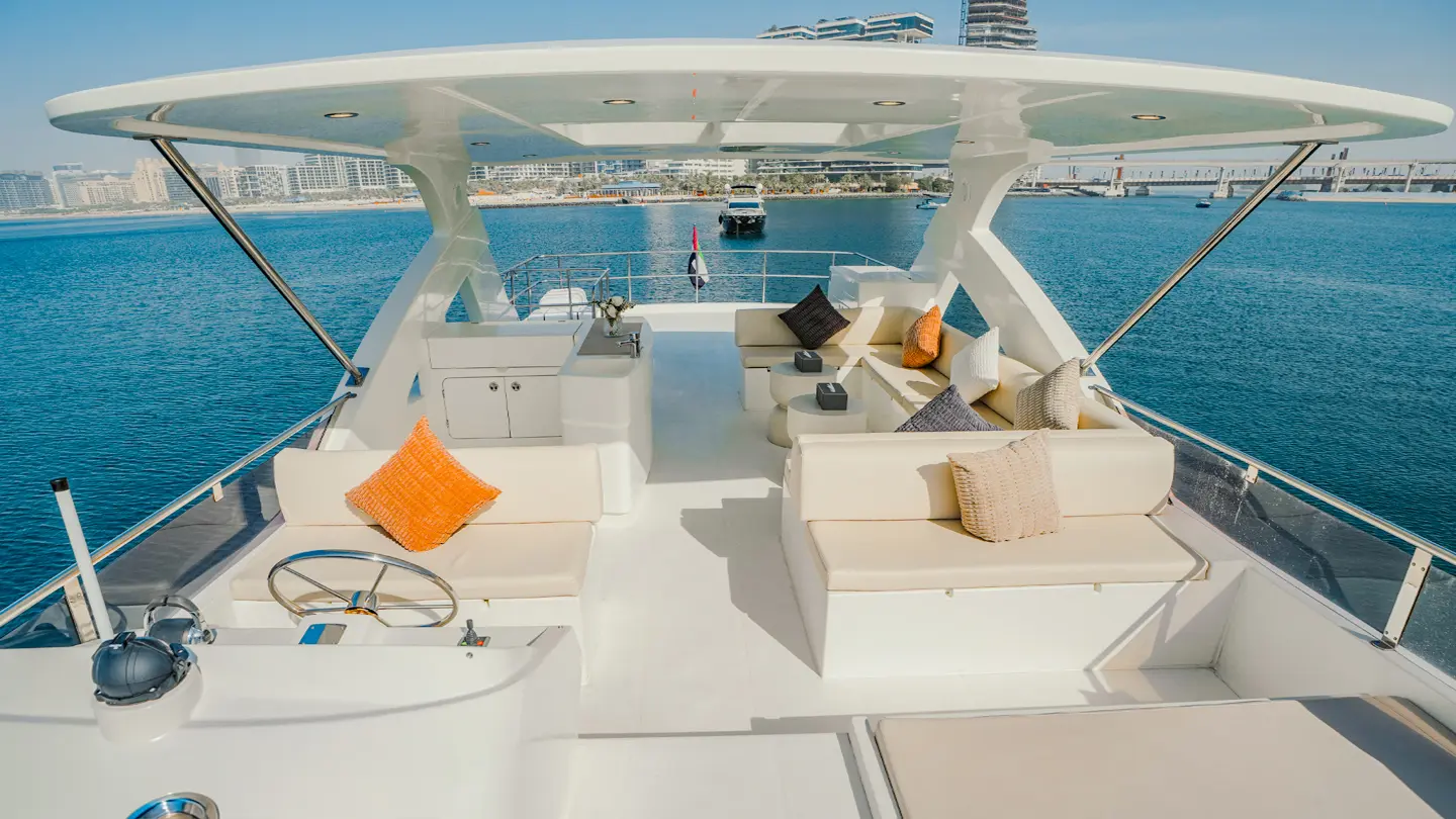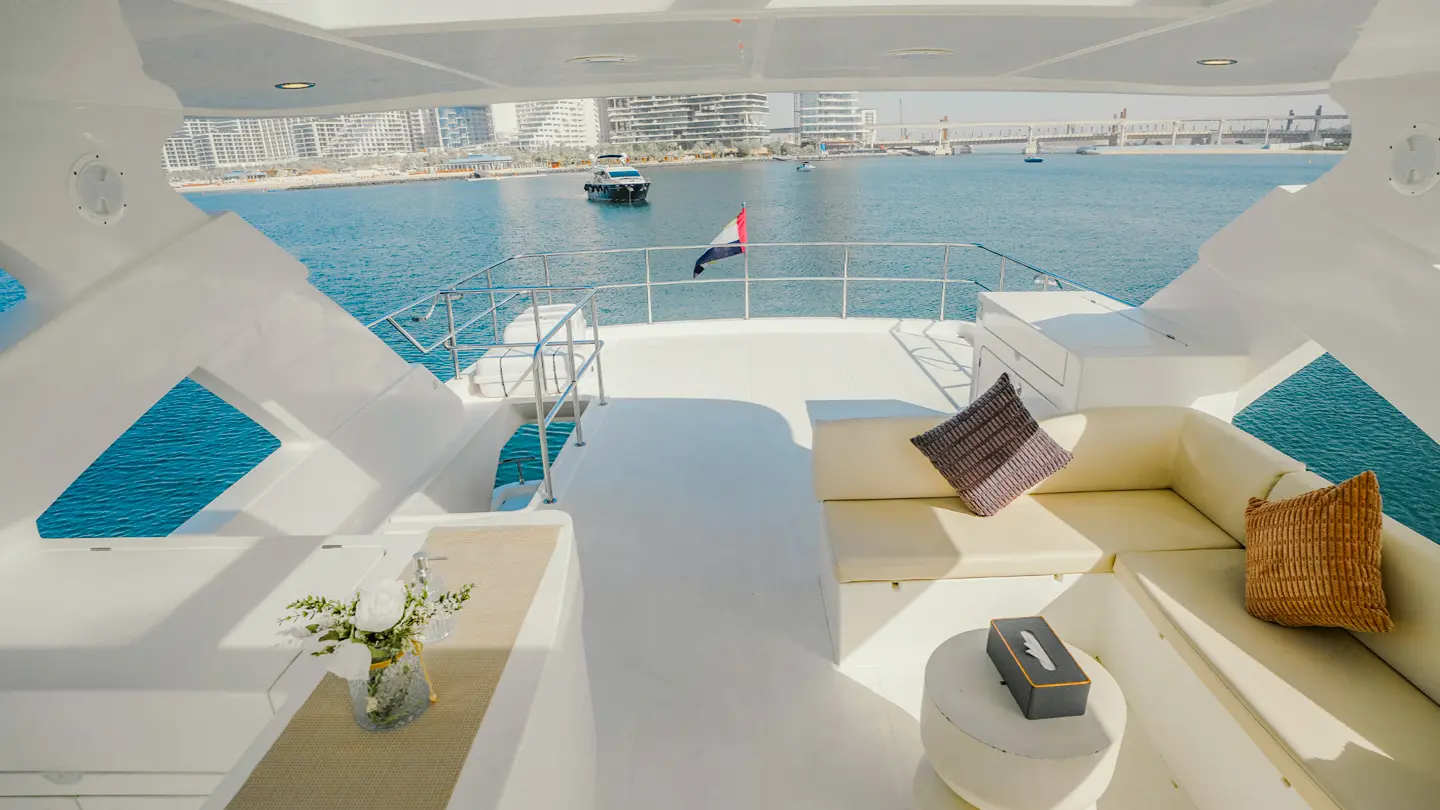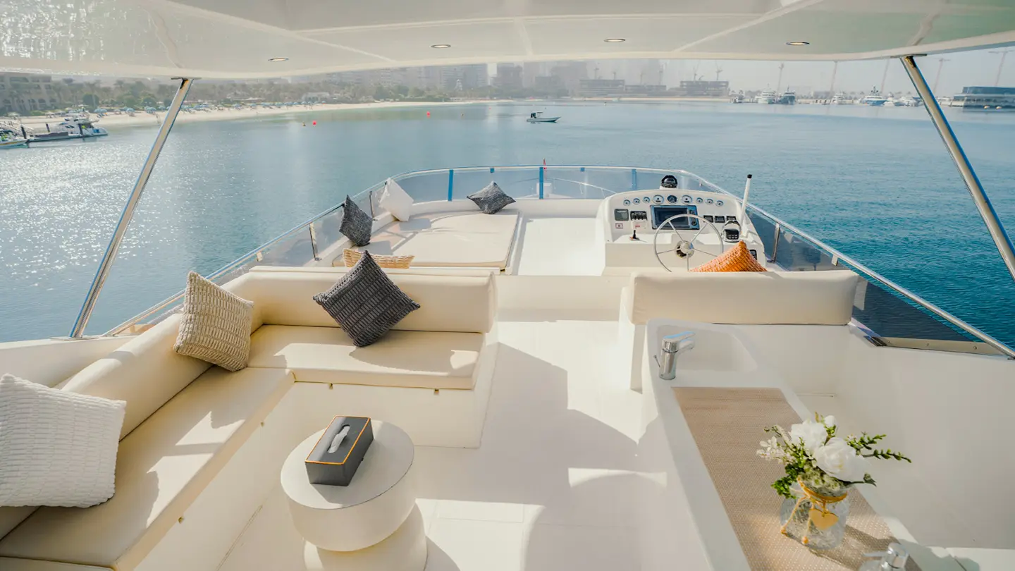 Book the brand new 92ft X42 yacht in Dubai, offering unique design and spacious luxury for up to 35 guests. Perfect for large groups seeking an exclusive sea experience with modern amenities and expert crew service.