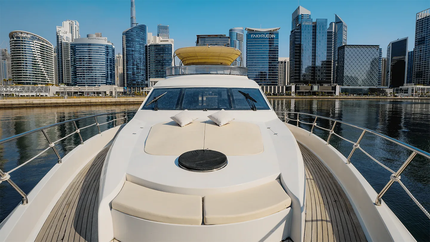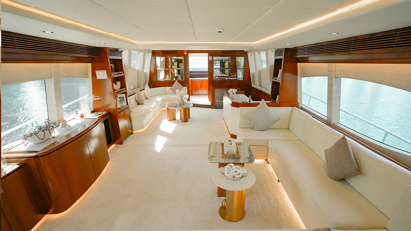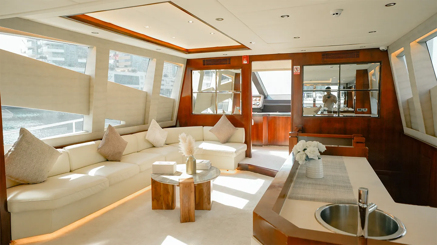 Xclusive 43 is a luxury yacht. She has a wide structure and a open plan top deck. perfect for large groups. Unique in design.