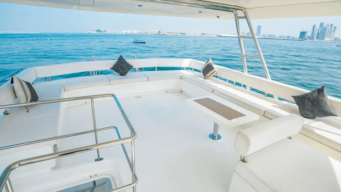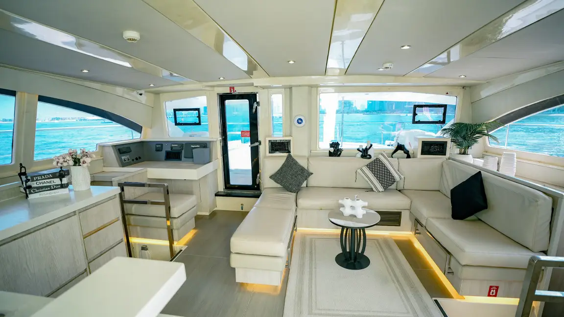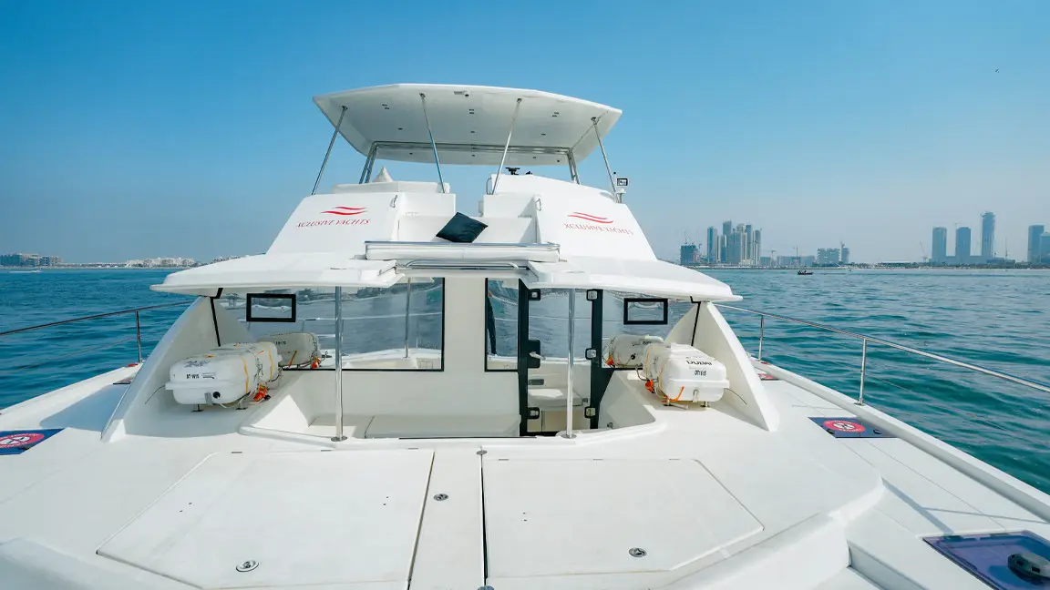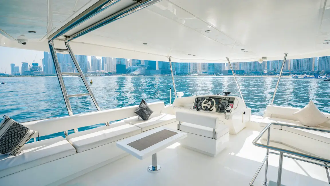 This yacht also boasts a large and open saloon, a galley with the latest appliances, and a 4 cabin layout with en-suite heads. The beautifully designed interiors are remarkably spacious, open, comfortable and functional, giving it the fine blend of looks, performance and livability.