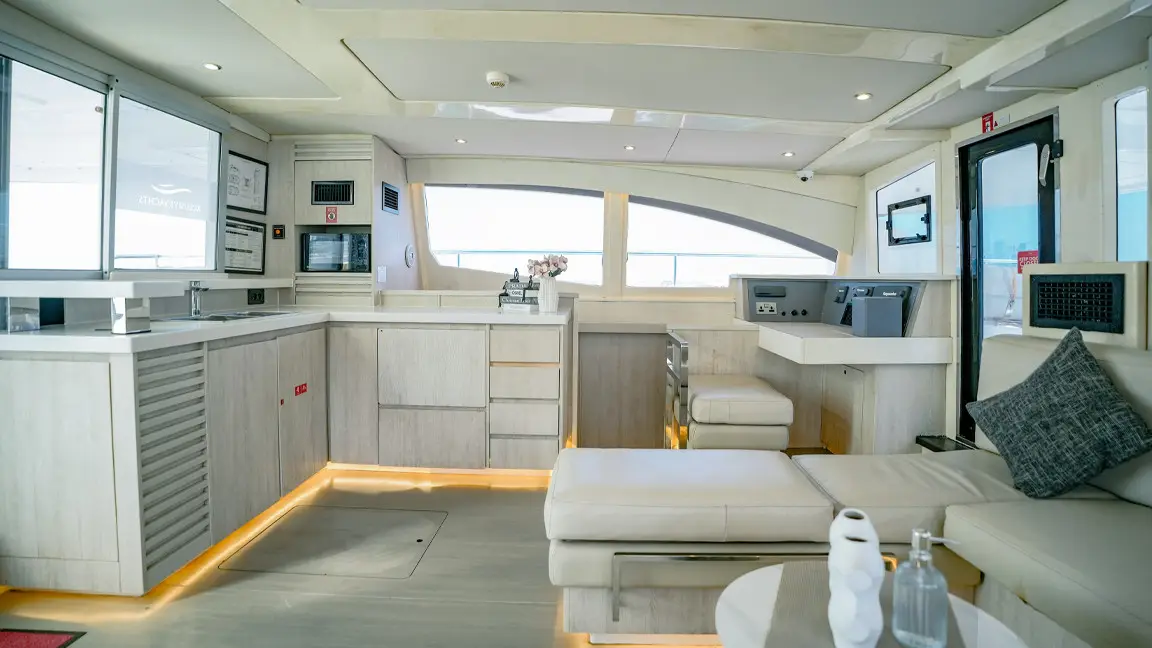 The result is a boat with the size and displacement to accommodate all of the luxuries and amenities one would expect in a high-end cruising catamaran.